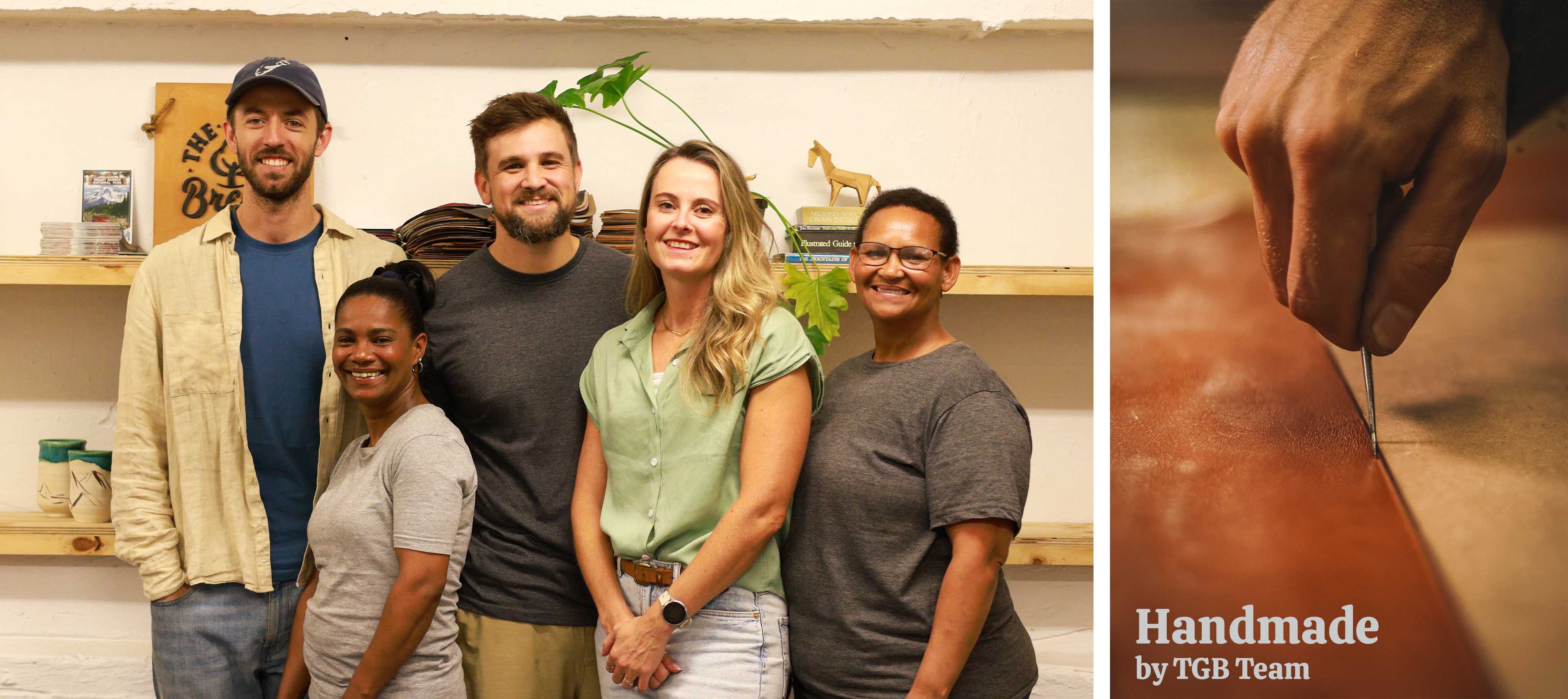 Goods are made with full grain, veg tanned leather, hand stitched with waxed thread, and 100% recycled PET felt.