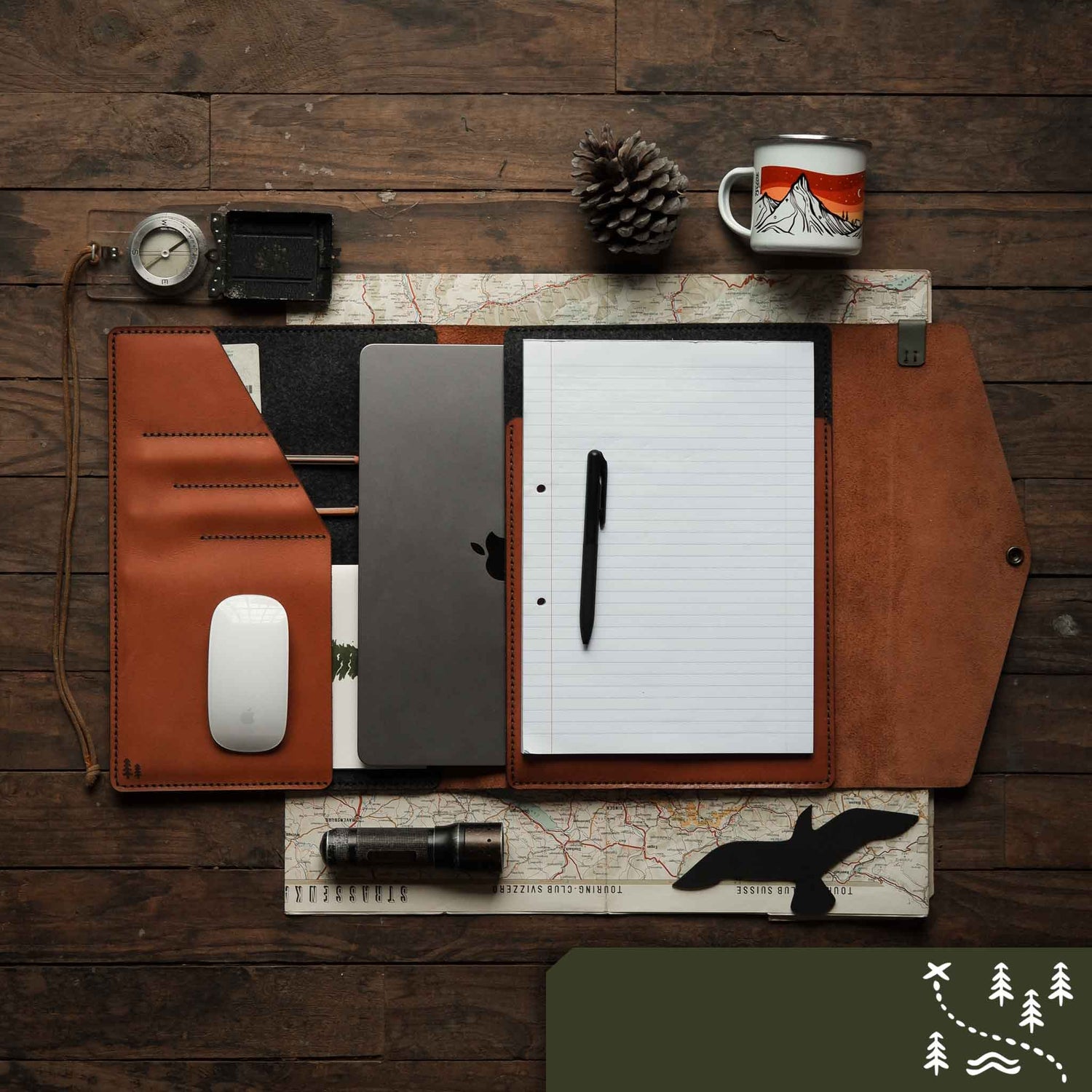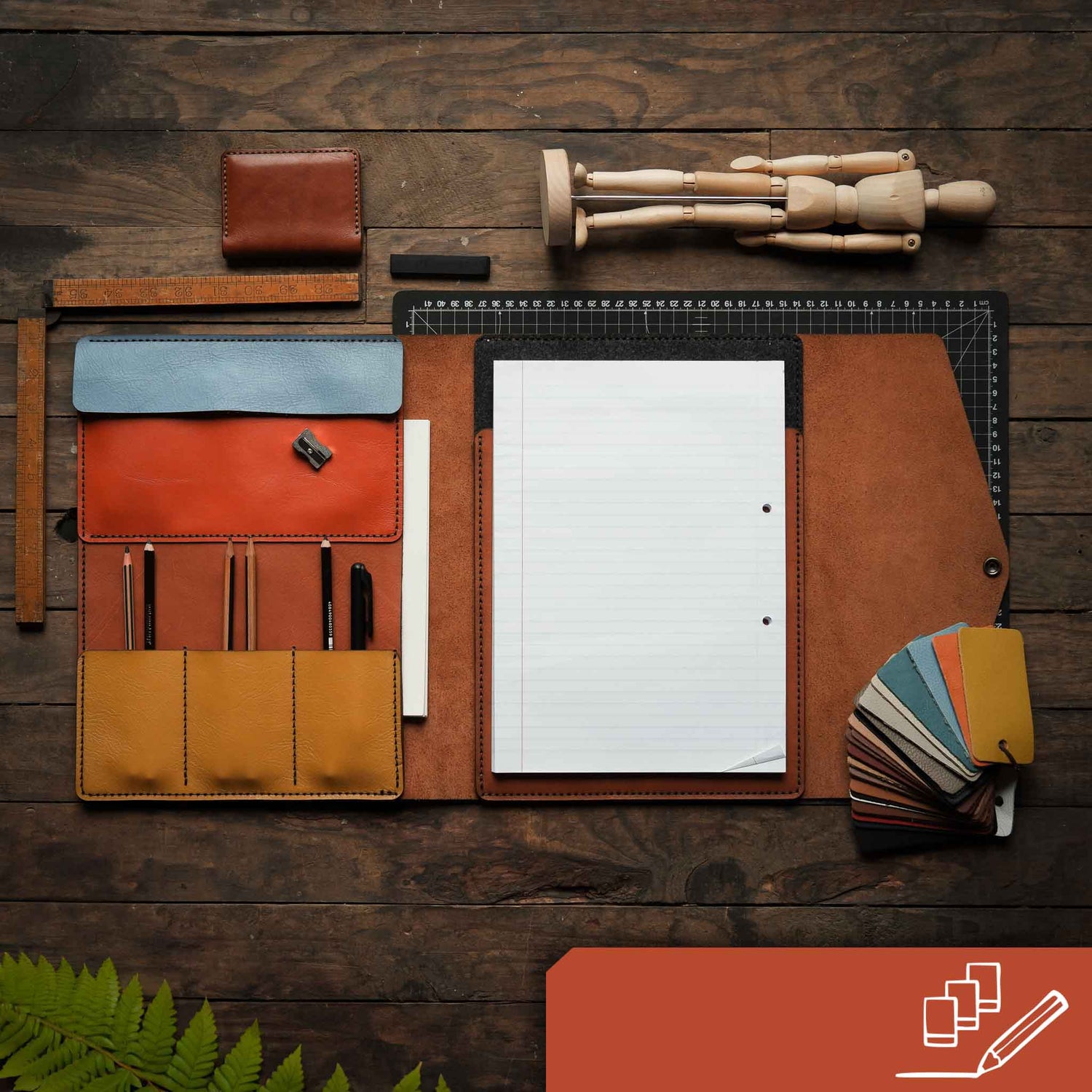 That satisfying feeling of seeing your things neatly packed and ready for the next adventure or meeting. Our high-quality, South African-made leather covers are the solution for keeping your notebook, pen, and essentials safe. Get yours personalised today.