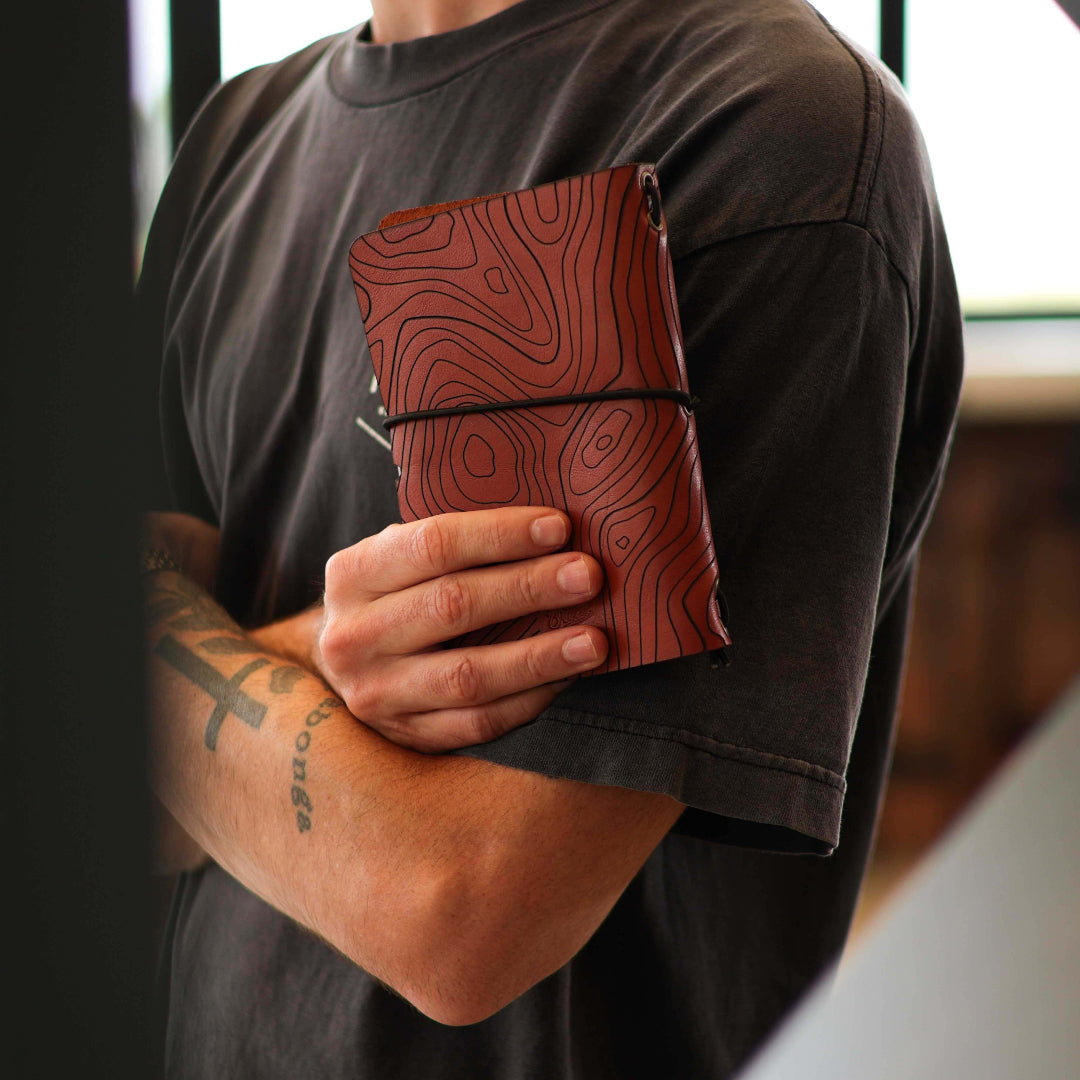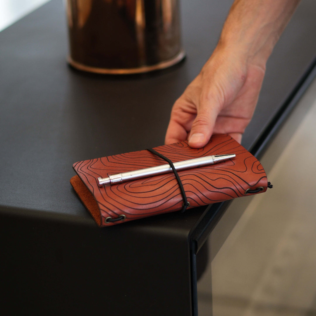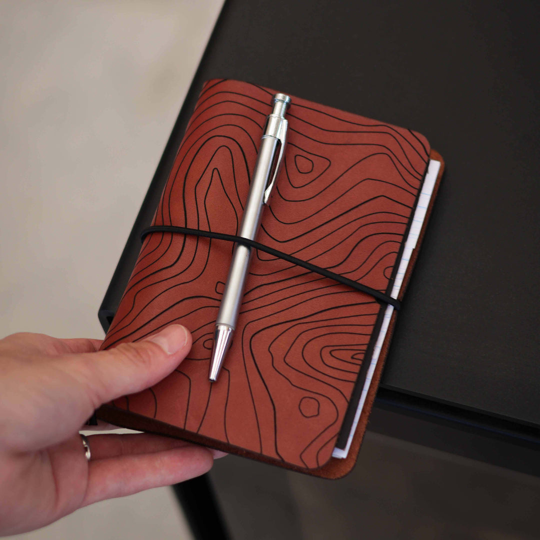 Looking for the perfect writing companion for your outdoor adventures? This A6 Leather Journal Cover from our Adventure Range might be just the right fit. Made with high-quality leather, it's sturdy enough to withstand all your travels, whether in the office or the great outdoors.