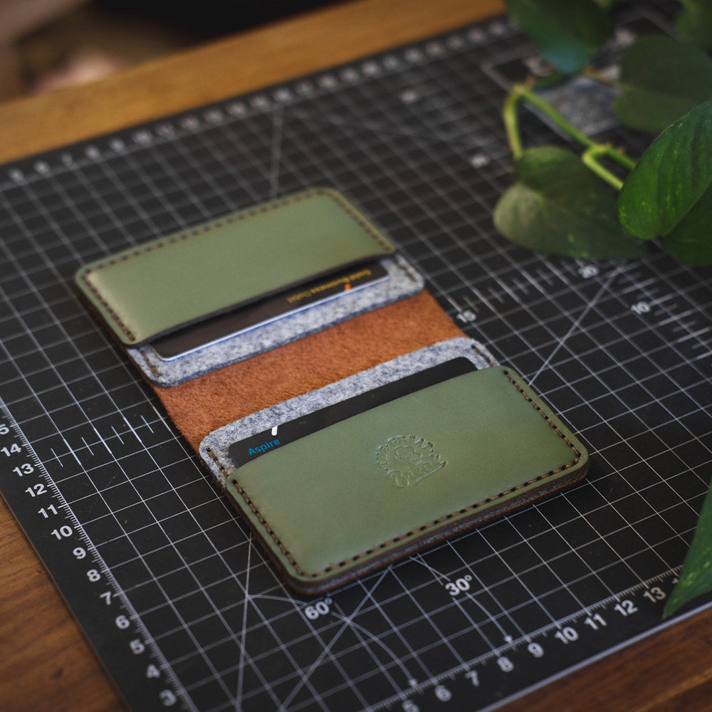 Our products are made with full grain, veg tanned leather and hand stitched with waxed thread. 100% recycled PET felt where applicable.